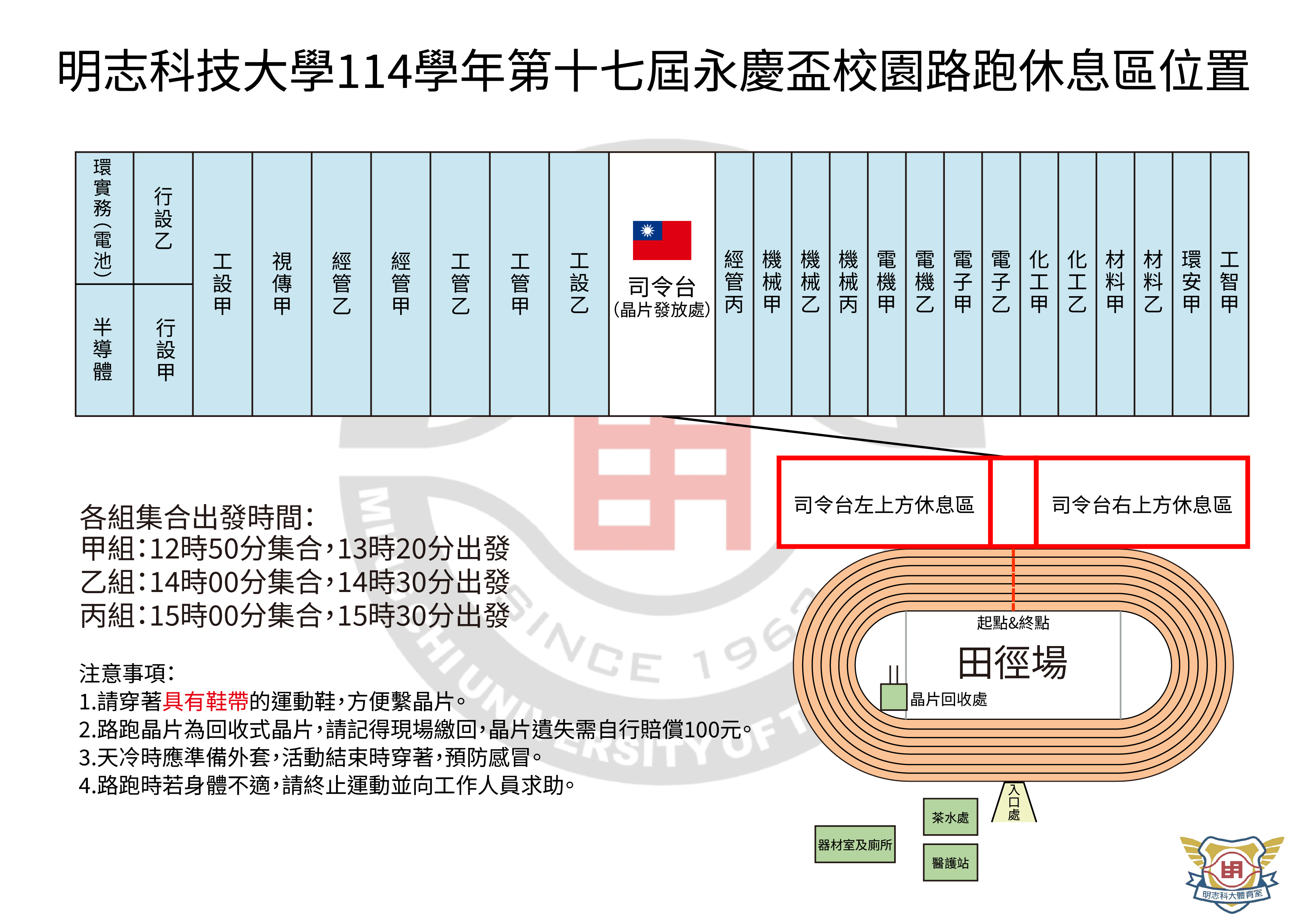 【公告】114學年第十七屆永慶盃校園路跑休息區位置圖
